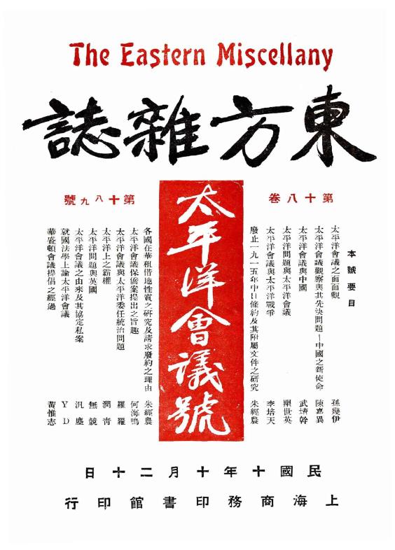 出版日期:中華民國十年十月